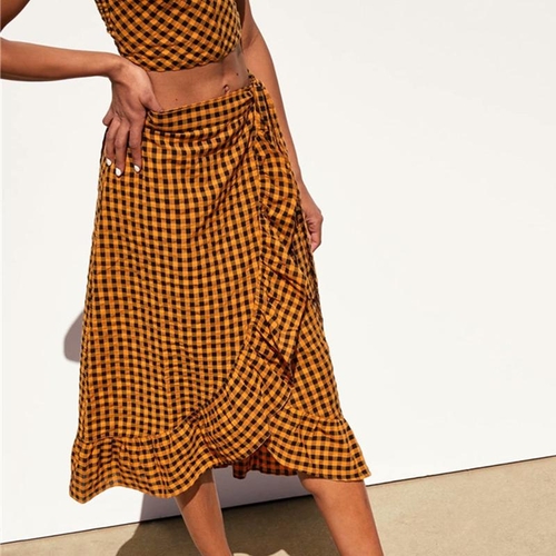 SKU: glamaker-elegant-yellow-plaid-ruffle-midi-skirt-women-high-waist-bow-tie-wrap-skirt-female-sexy-mid-calf-bandage-a-line-skirts-1109995509