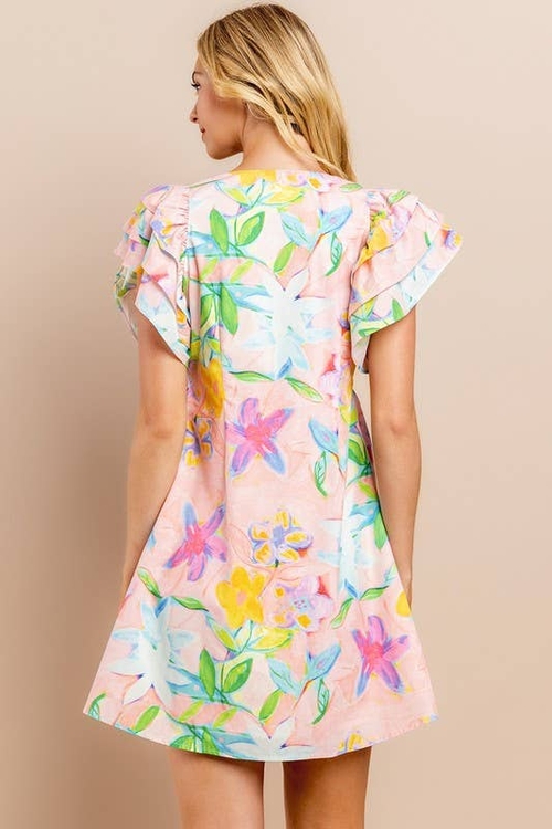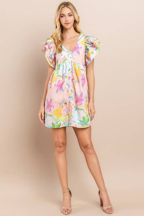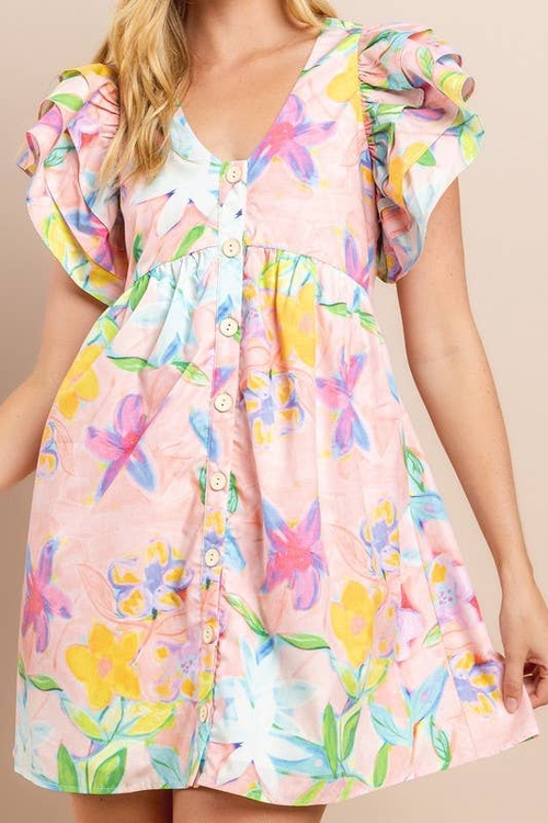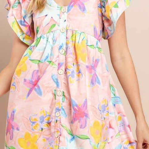 Tags: attire, blush, button down, floral print, floral printed dress, floral printed mini dress, gift for friends, gift for girl friends, gift item, gift items, ruffle sleeve, v neckline, wardrobe, womens dress