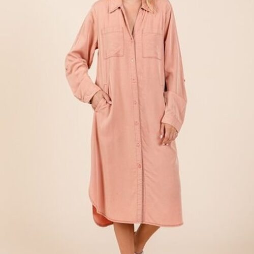 The Button Down Long Sleeve Shirt Dress is a timeless and versatile wardrobe staple. Featuring a classic button-down design and long sleeves, this dress offers a polished and sophisticated look. Perfect for both casual and more formal settings, you can style it with accessories and footwear to create different outfit options. Its effortlessly chic silhouette makes it an essential piece that can be worn year-round for a stylish and put-together ensemble.
