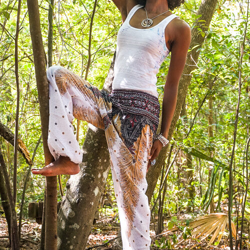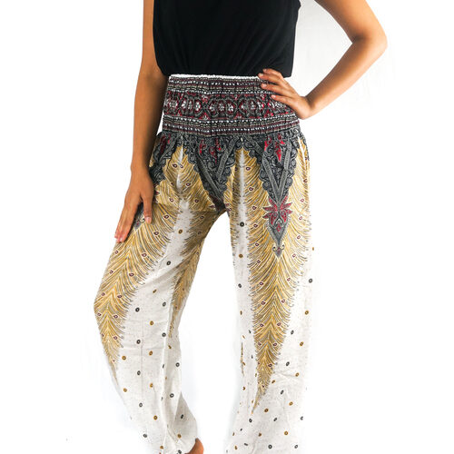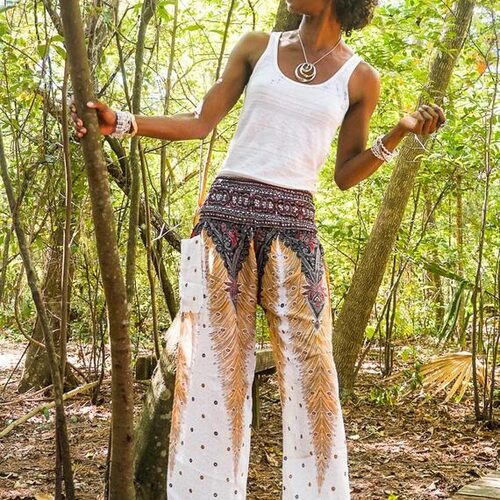 Loose and supremely comfortable Harem Pants. They are unisex and have both an elastic waist and ankles for a flexible fit. Standard one size fits most (US size 0-14 or XS-L). Our harem pants are handmade with lightweight 100% rayon that is extremely breathable and flowy. These pants are great for exercise, yoga, taking a walk in nature or the beach, festivals, family get together, or just relaxing at your home.